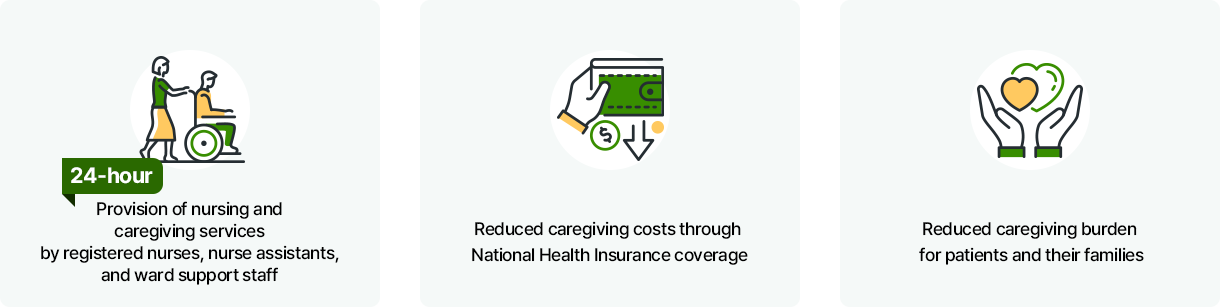 The Integrated Nursing Care Service provides 24-hour high-quality inpatient nursing care by dedicated nursing staff, without the need for privately hired caregivers or family guardians to stay with the patient.